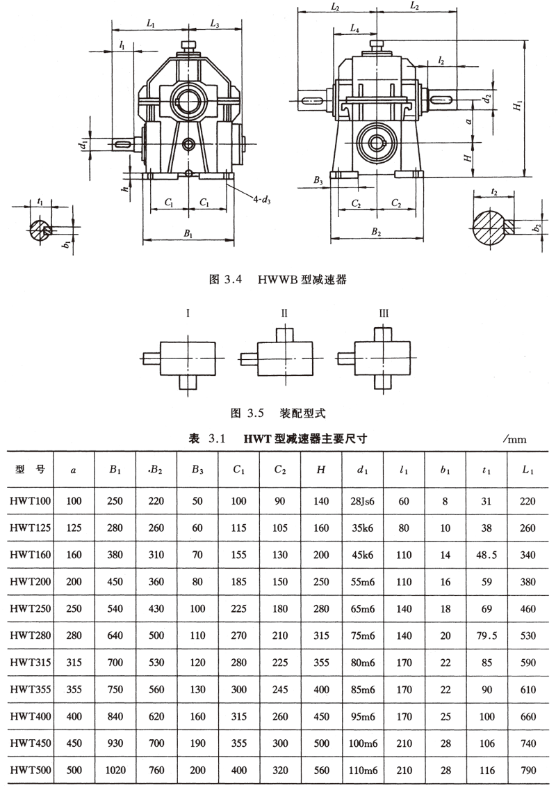 (3)HWB型—蝸桿在蝸輪之下鑄造機體和機蓋直廓環(huán)面蝸桿減速器;