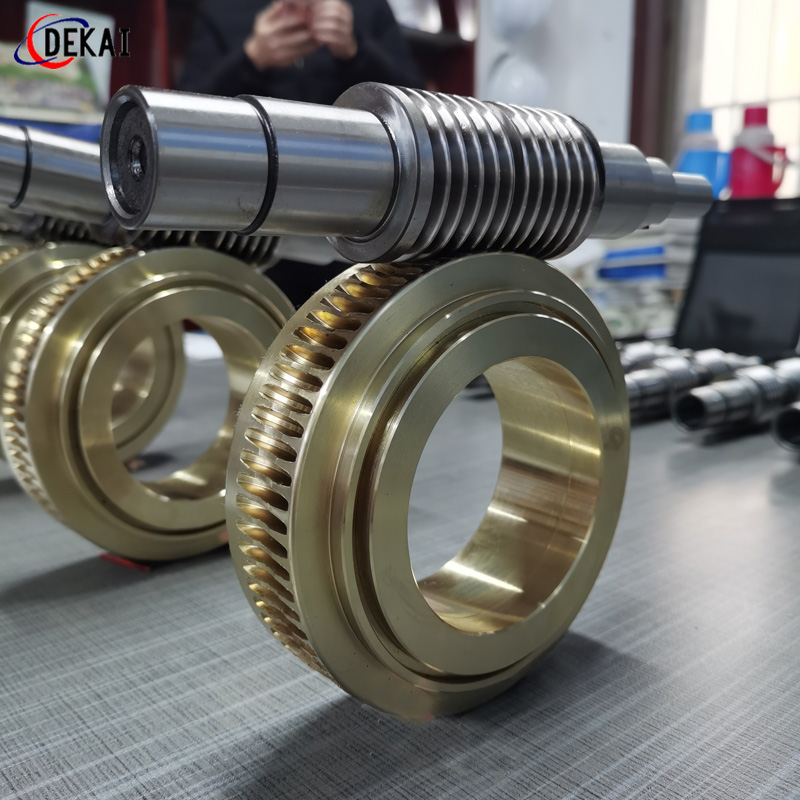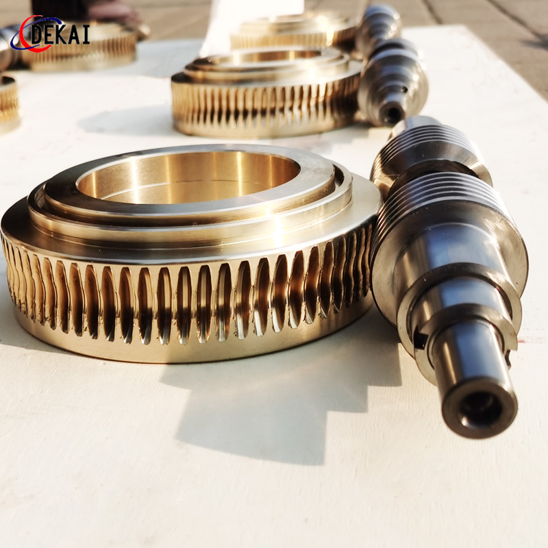 分度精度高,側(cè)隙可調(diào)整至0.01~0.03Mmm;齒面接觸穩(wěn),不會(huì)改變中心距。調(diào)整標(biāo)準(zhǔn),方便可靠。裝配靈活,裝配時(shí),用調(diào)整環(huán)來獲得合適的嚙合側(cè)隙。使用中如果因?yàn)槟p導(dǎo)致傳動(dòng)間隙增大,只要調(diào)整一下蝸桿的軸向位置,可以使蝸桿蝸輪傳動(dòng)副恢復(fù)到原來的精度,不需要更換新的蝸桿,蝸輪,比較實(shí)用。蝸桿材質(zhì)采用40Cr,42CrMo、38CrMoAl合金鋼。蝸桿采用錫青銅ZCuSn10Pb1離心澆鑄,具有高強(qiáng)度耐磨性。