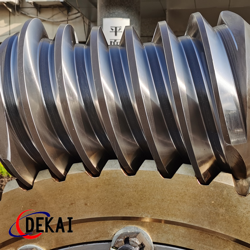 承載能力大:平面二次包絡環(huán)面蝸桿能多齒同時進去嚙合,增大了接觸面積,減少了齒面壓力,承受大的沖擊載荷。蝸桿蝸輪的接觸線是沿齒高方向上,并且齒面的嚙合是在接觸線上,具有很小的相對曲率,使接觸應力減少。蝸桿和蝸輪在嚙合中同時有兩條接觸線進入工作區(qū)域。這種增加嚙合齒數(shù)一樣,可提高承載能力磨削的蝸桿齒面,表面粗糙度Ra0.8。高質量的蝸桿幾何尺寸和表面粗糙度,保證耐磨防止大負荷時油膜破壞。蝸桿的齒面是經過氮化熱處理后精制而成,齒面硬度HRC≥58,高硬度的蝸桿在設計上保證有足夠的剛性以致于他的彎曲和其它因素不影響上述嚙合特性。