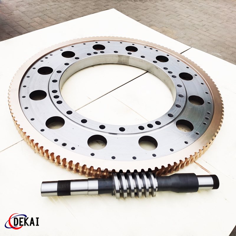 德州德凱減速傳動機械有限公司采用雙蝸桿對消隙原理開發(fā)生產(chǎn)的精密蝸輪蝸桿副,主要用于大型機床工作臺的驅(qū)動,高精密分割器等無間隙圓周運動精確定位場合。該蝸輪副中心距最大可做到2000mm,單節(jié)速比可做到1-365同時不產(chǎn)生回程間隙。