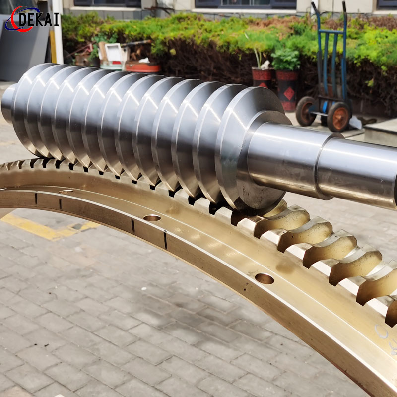 分度精度高,側(cè)隙可調(diào)整至0.01~0.03Mmm;齒面接觸穩(wěn),不會改變中心距。調(diào)整標準,方便可靠。裝配靈活,裝配時,用調(diào)整環(huán)來獲得合適的嚙合側(cè)隙。使用中如果因為磨損導致傳動間隙增大,只要調(diào)整一下蝸桿的軸向位置,可以使蝸桿蝸輪傳動副恢復到原來的精度,不需要更換新的蝸桿,蝸輪,比較實用。蝸桿材質(zhì)采用40Cr,42CrMo、38CrMoAl合金鋼。蝸桿采用錫青銅ZCuSn10Pb1離心澆鑄,具有高強度耐磨性。