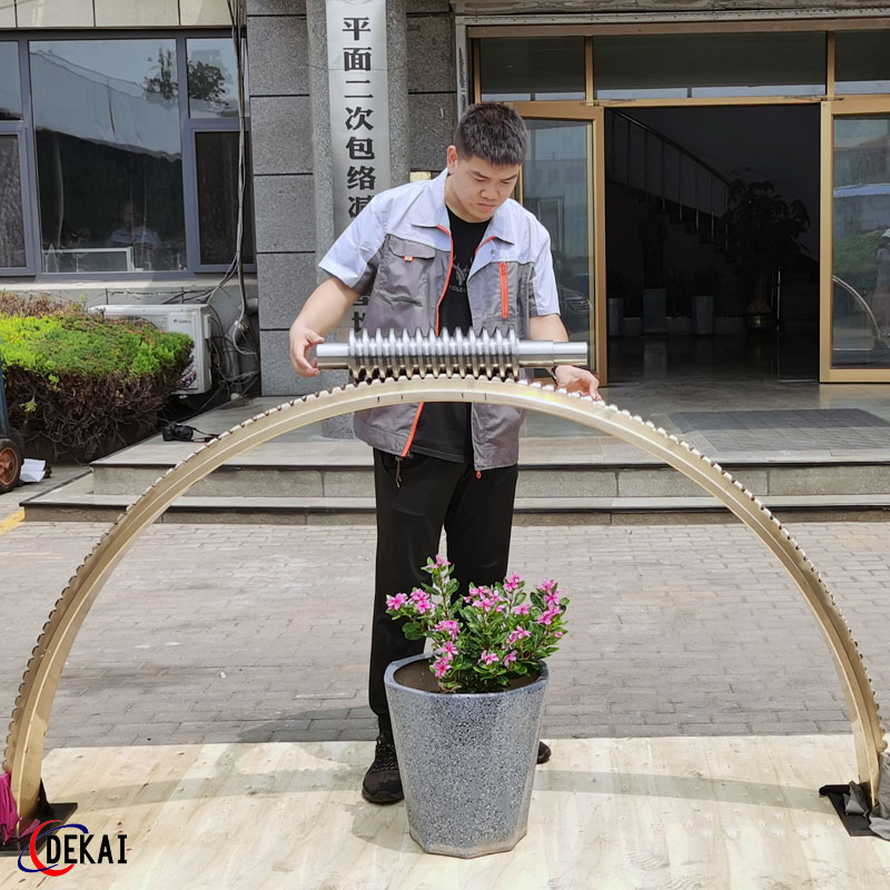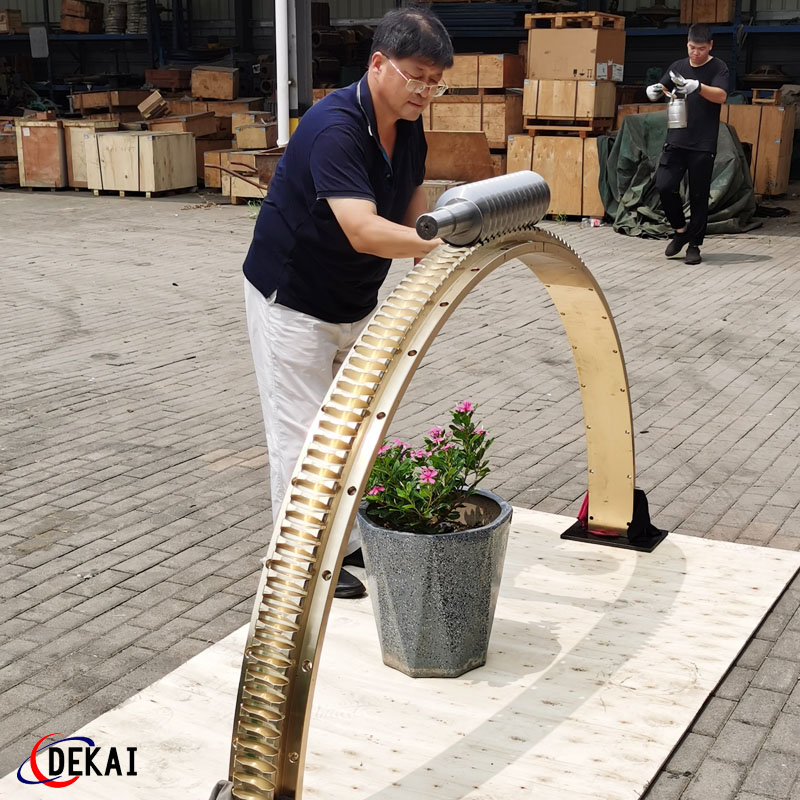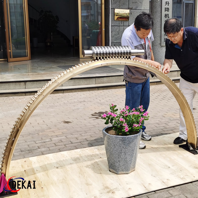 德州德凱減速傳動機械有限公司采用雙蝸桿對消隙原理開發(fā)生產(chǎn)的精密蝸輪蝸桿副,主要用于大型機床工作臺的驅(qū)動,高精密分割器等無間隙圓周運動精確定位場合。該蝸輪副中心距最大可做到2000mm,單節(jié)速比可做到1-365同時不產(chǎn)生回程間隙。