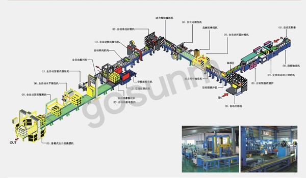 自動(dòng)開箱→自動(dòng)裝箱一層→自動(dòng)放隔板→自動(dòng)裝箱第二層→自動(dòng)折蓋封箱→自動(dòng)打帶→自動(dòng)十字90度轉(zhuǎn)向→自動(dòng)打帶→完成。
